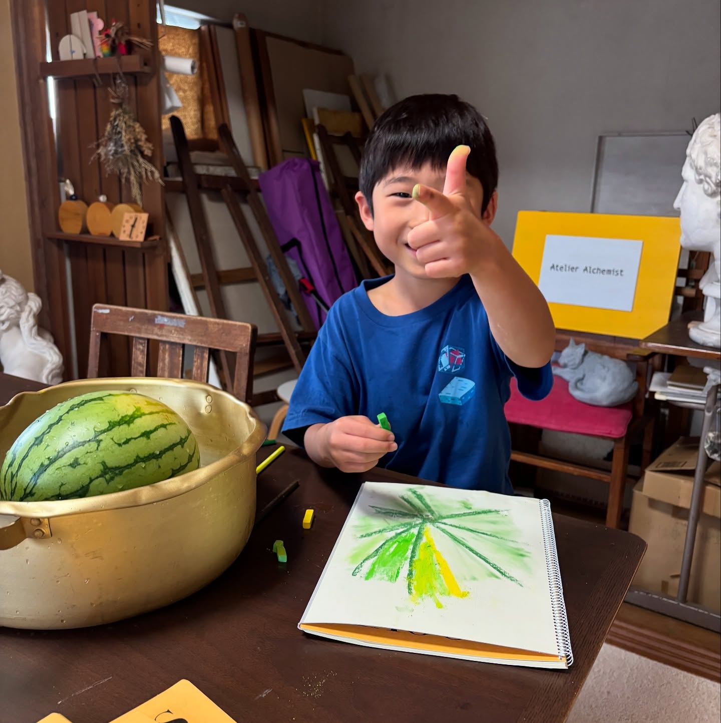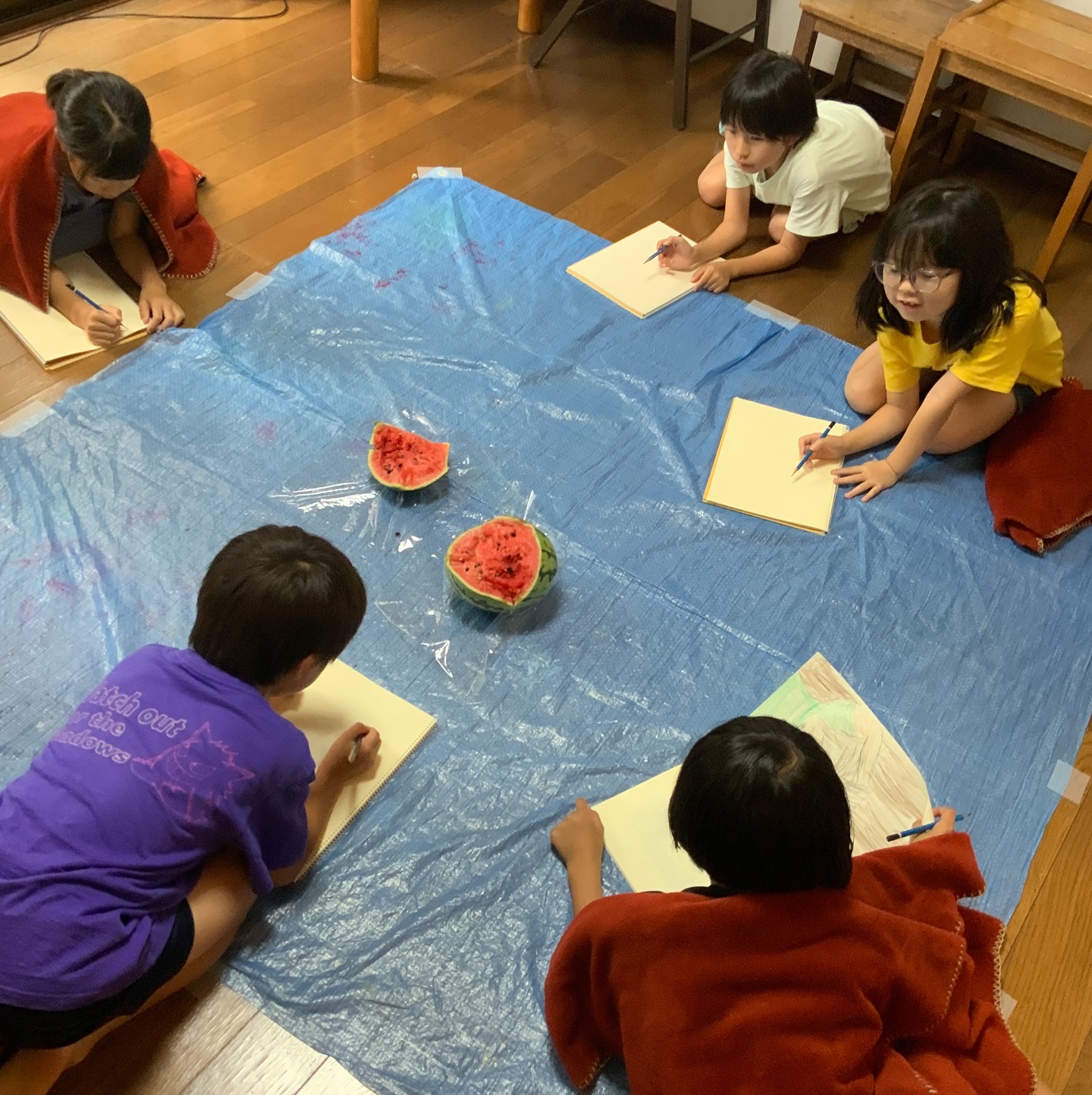 火曜日は、スイカ割り&スイカのスケッチも合同でおこなっています。
