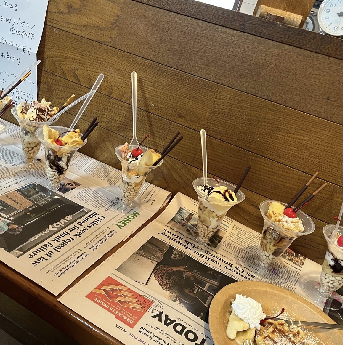 みんなで朝から「おにぎり作り」と「パフェ作り」。