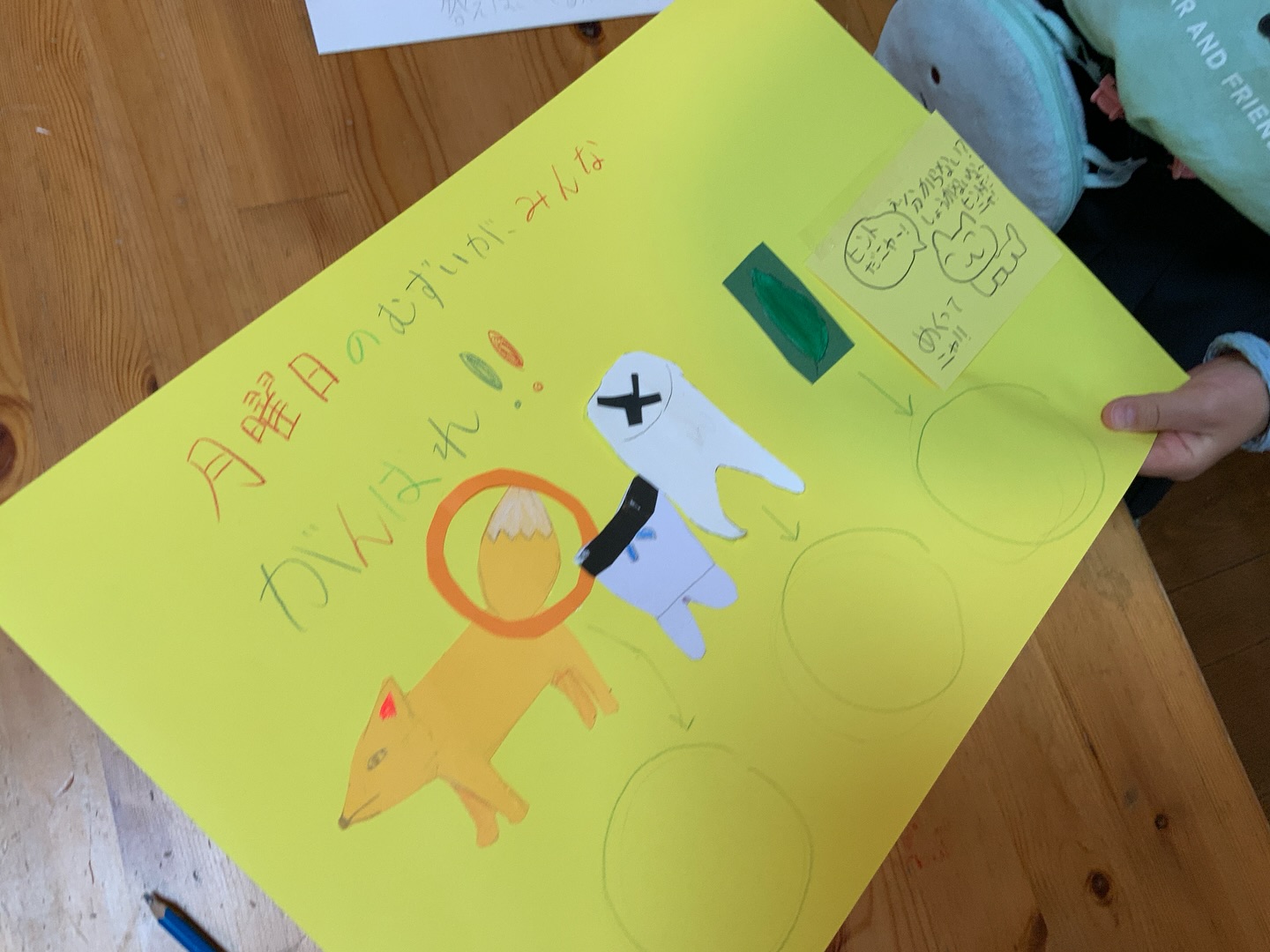 内容はちびっ子発信の場合と先生発信の場合と 半々くらいで決まっていきます。