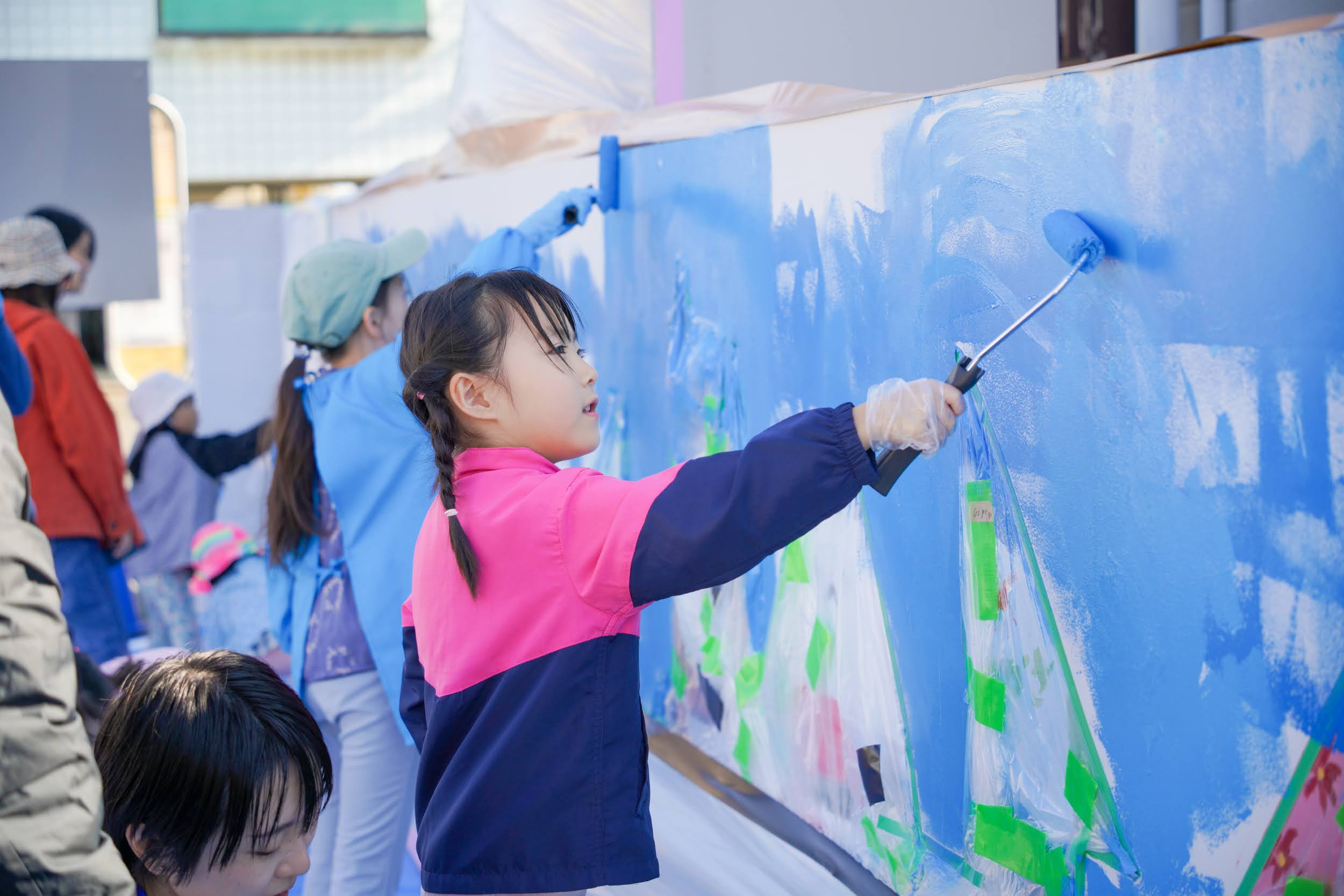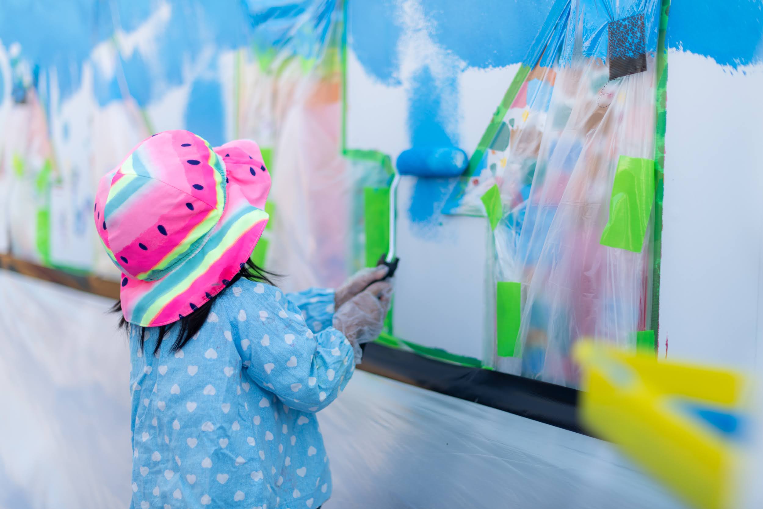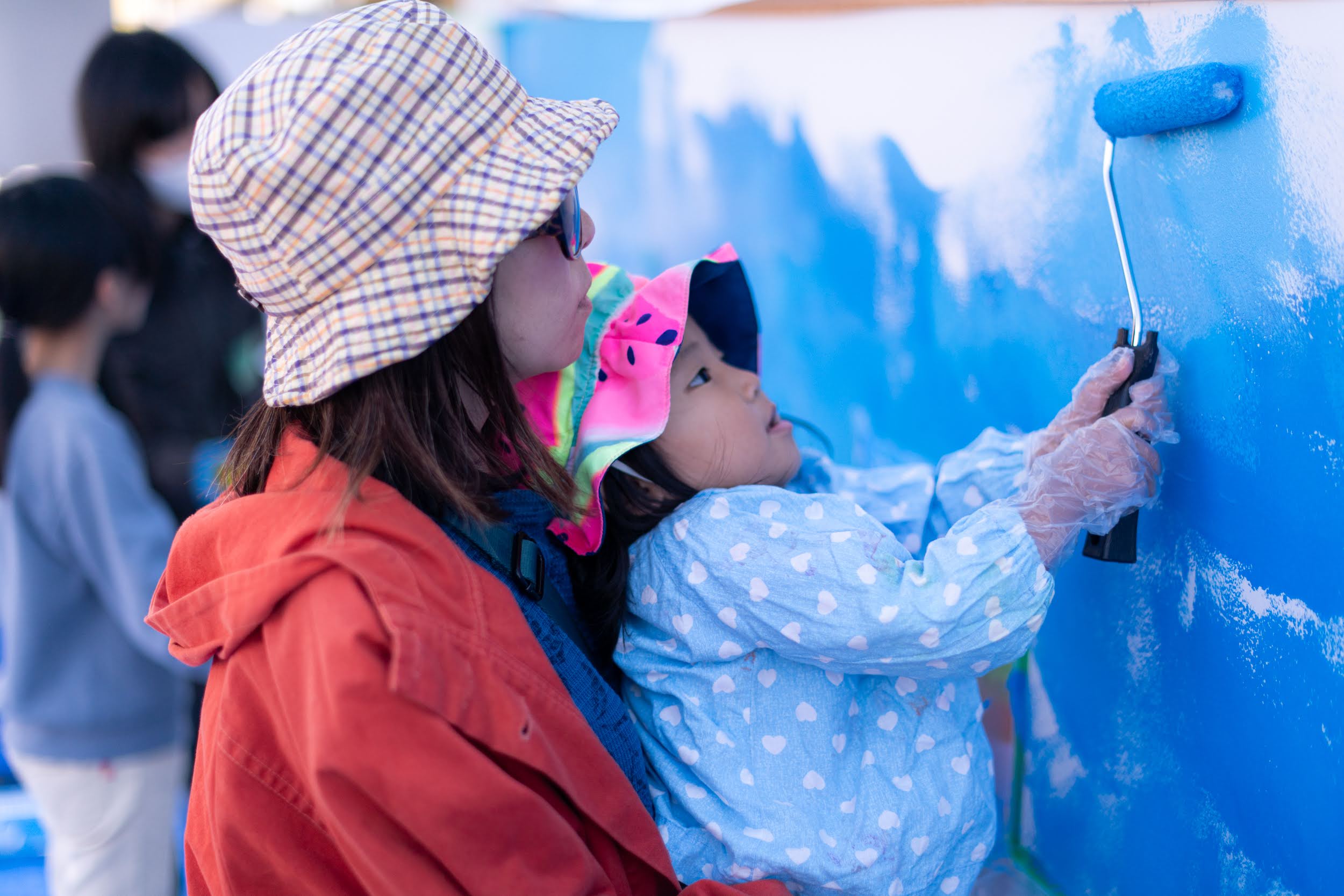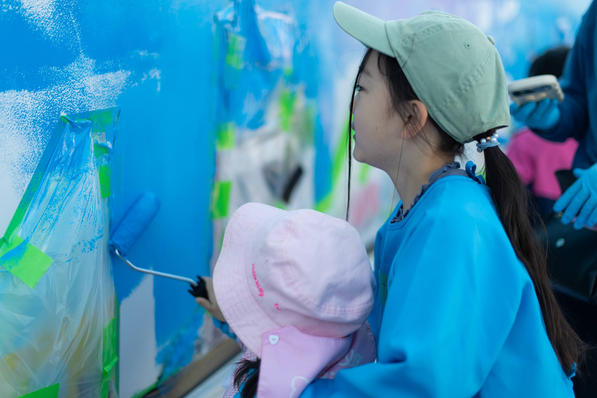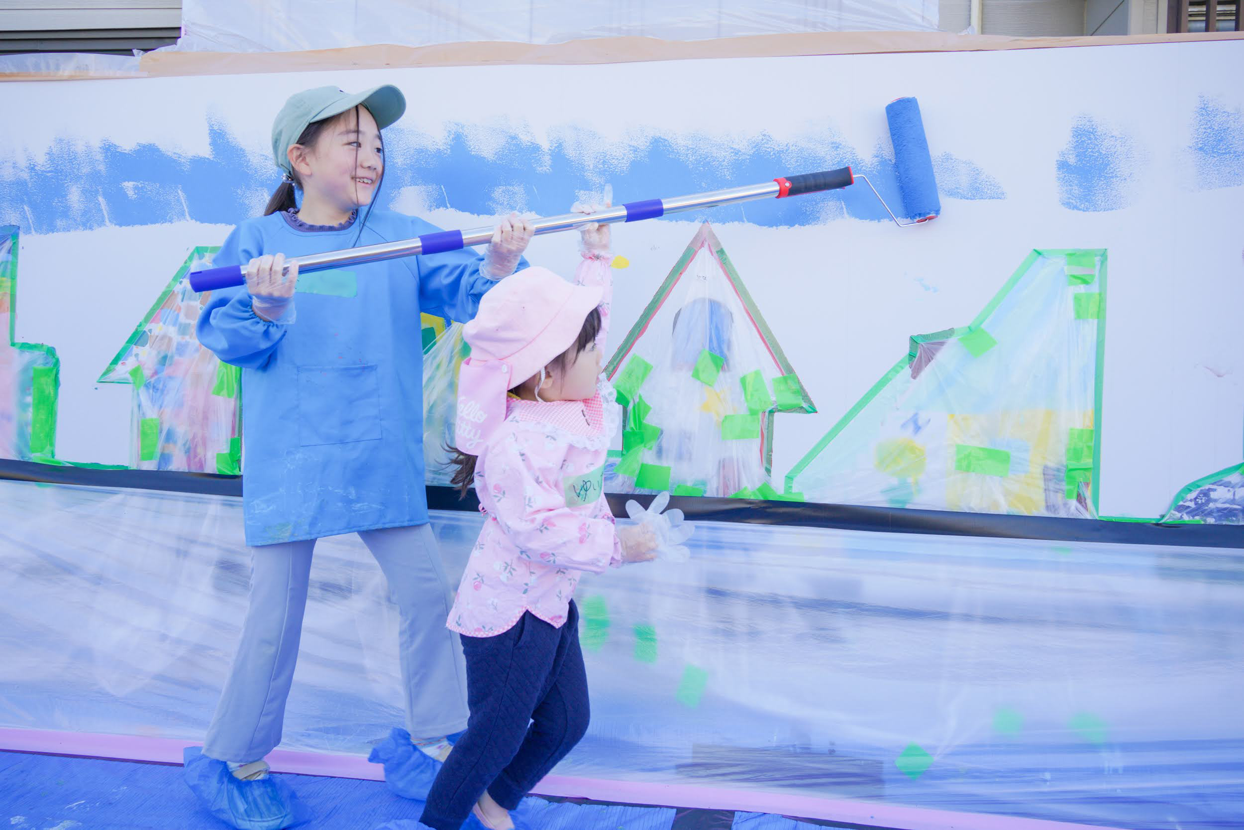 なが〜いローラーでペンキを塗るなんて、なかなかない体験ですよね。