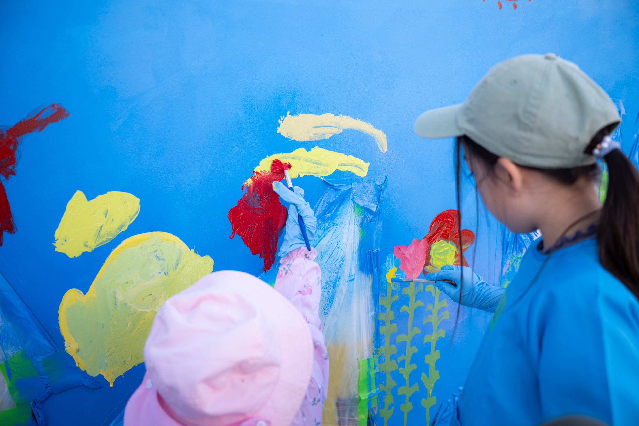 13メートルの壁にペンキで絵を描く!というワークショップを行いました。