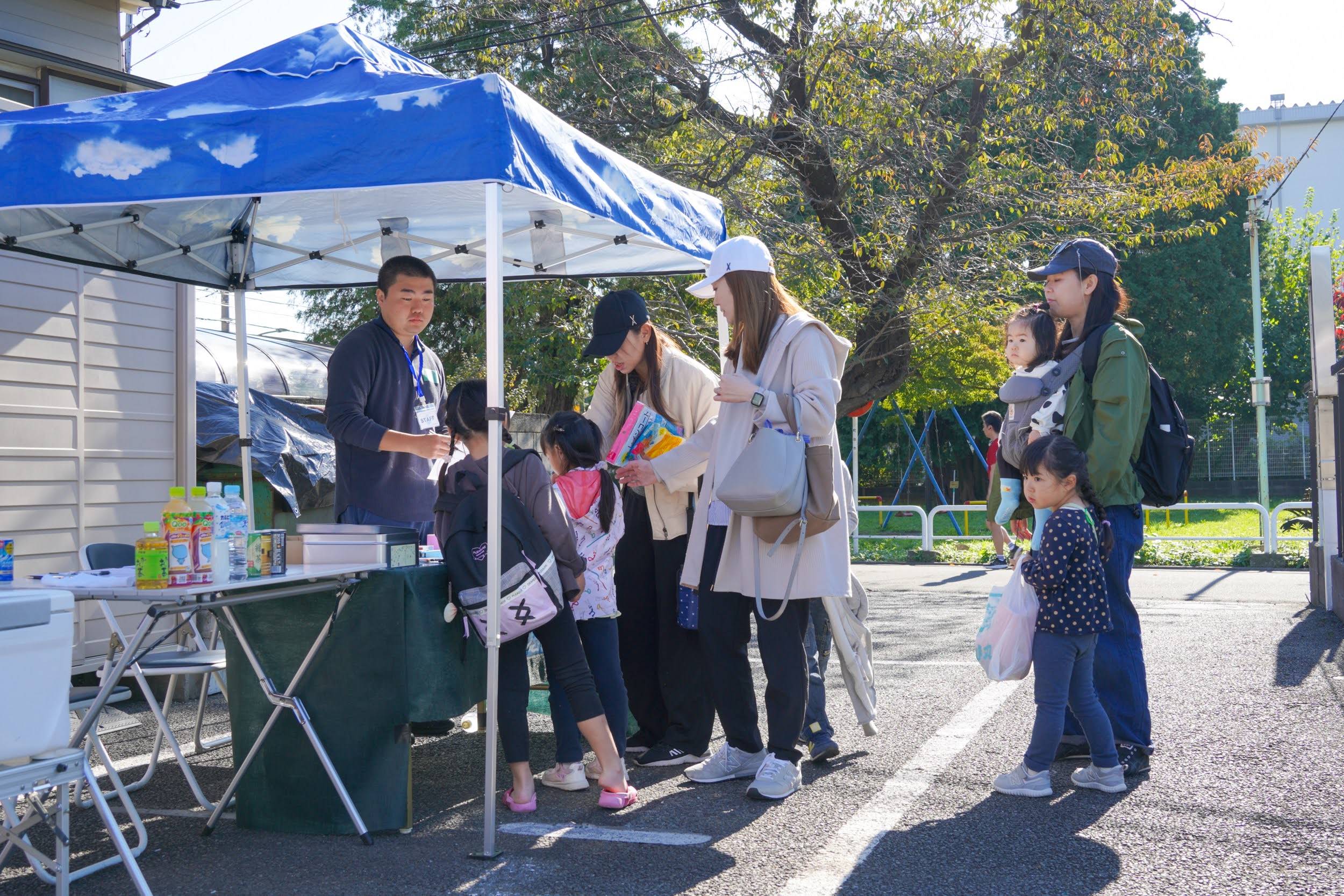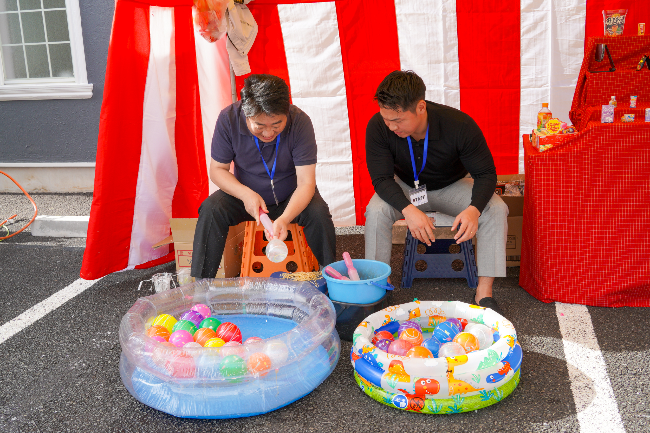 受付を担当してくださる社員さん。ヨーヨー釣りなどの楽しみごとの屋台を担当する方。
